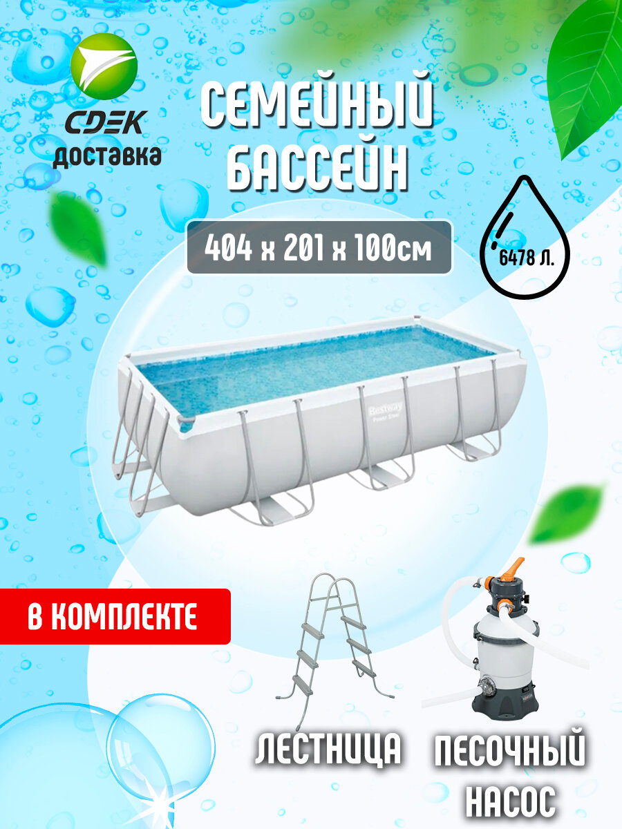 Бассейн BESTWAY 56442 POWER STEEL с песч. фильтром и лестн. 404*201*100 см, 6478 л 51 568 ₽