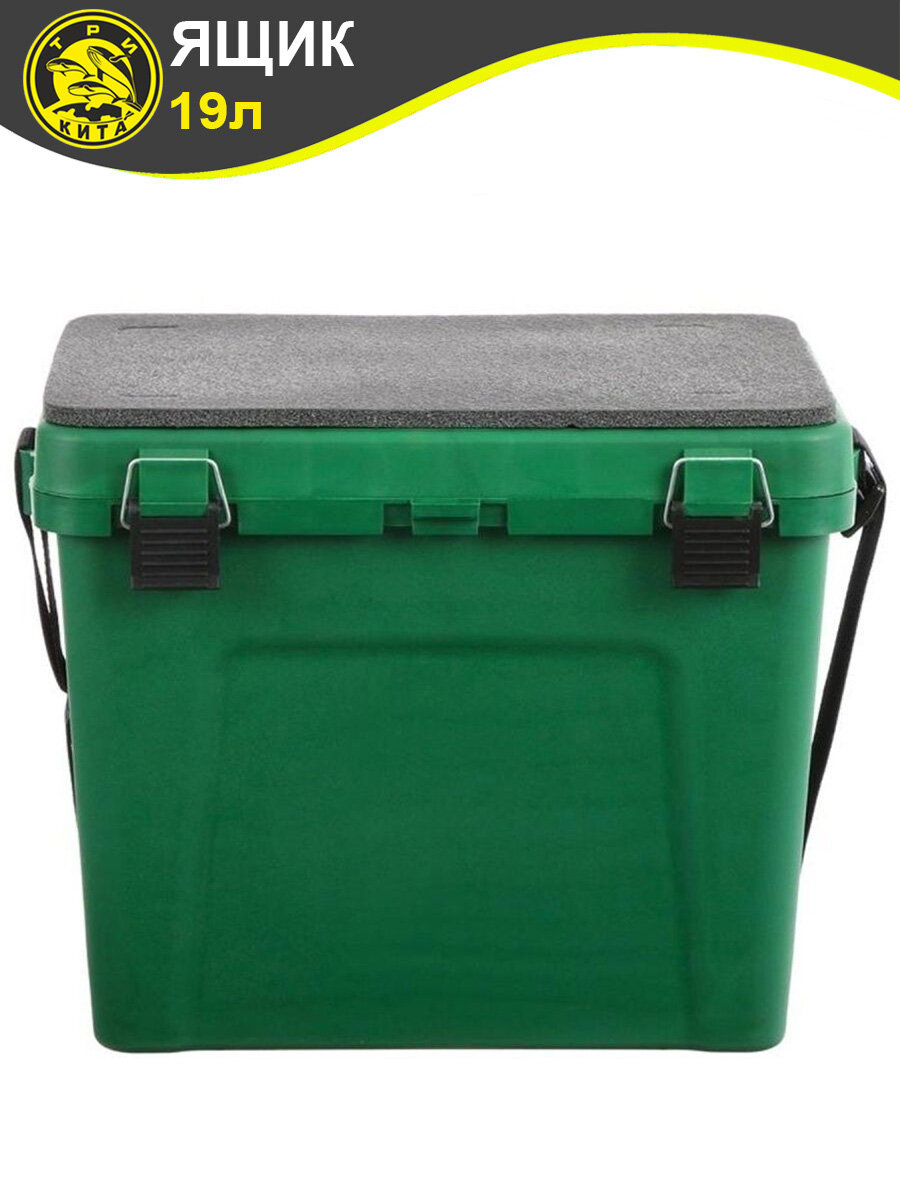 Ящик для рыбалки ТРИ кита Зимний большой 36х24х38 см черно-зеленый