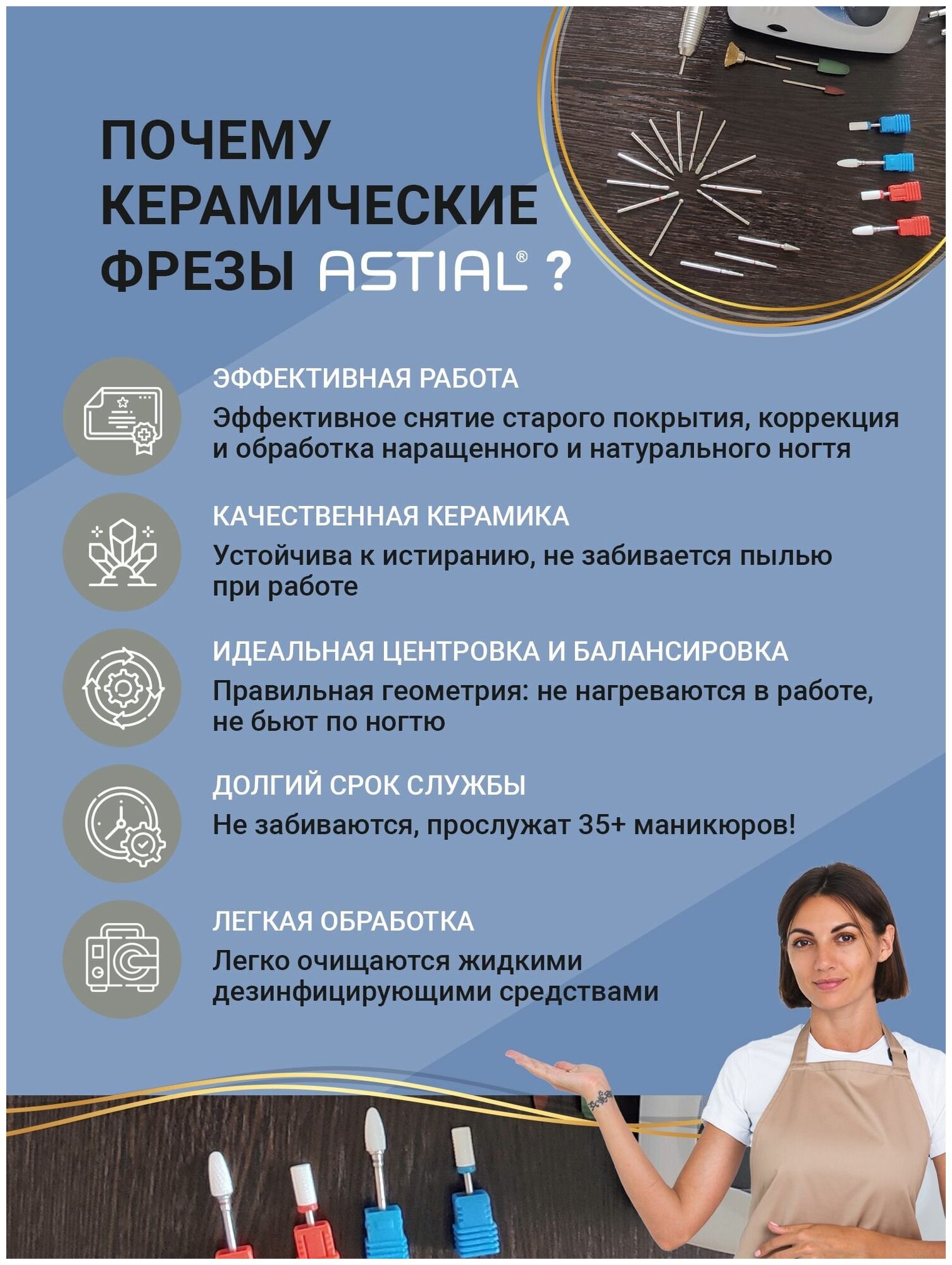 Astial / Фреза керамическая кукуруза для коррекции ногтей и снятия гель лака красная насечка 3 шт информация: