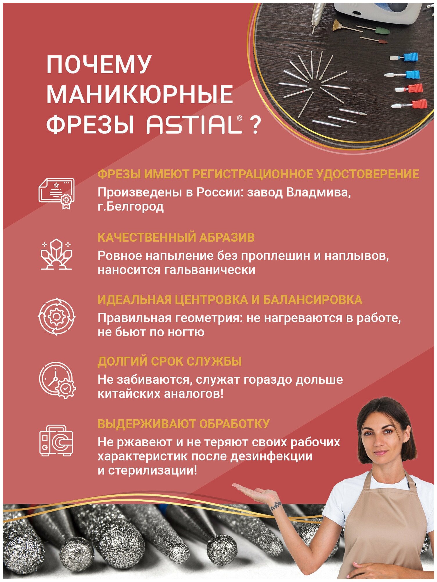 Astial / Фреза для маникюра и педикюра алмазная тонкая красная Почка Конус Капля Морковка Набор для кутикулы 5 шт информация: