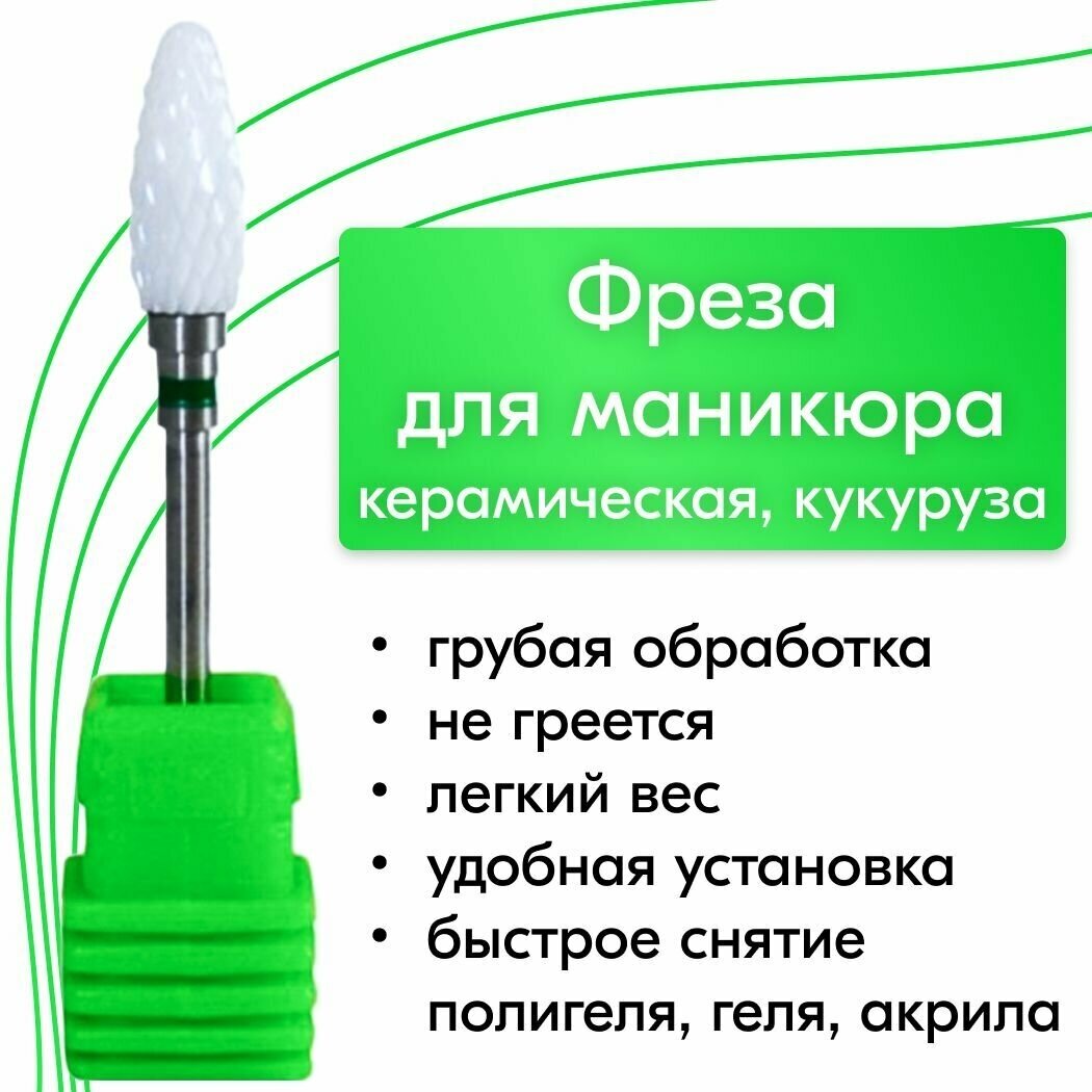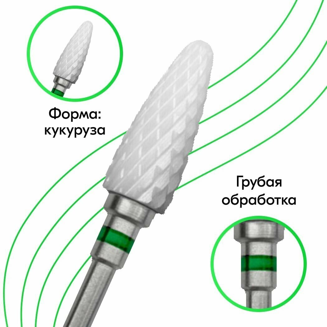 10 цен на NailsProfi, Фреза зеленая кукуруза керамическая для аппаратного маникюра и педикюра, жесткая обработка