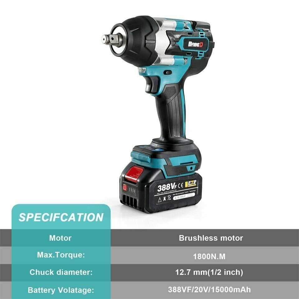 Гайковерт Babeq ударный аккумуляторный 1800 NM 1/2 нм, дюйма 2 АКБ и ЗУ информация:
