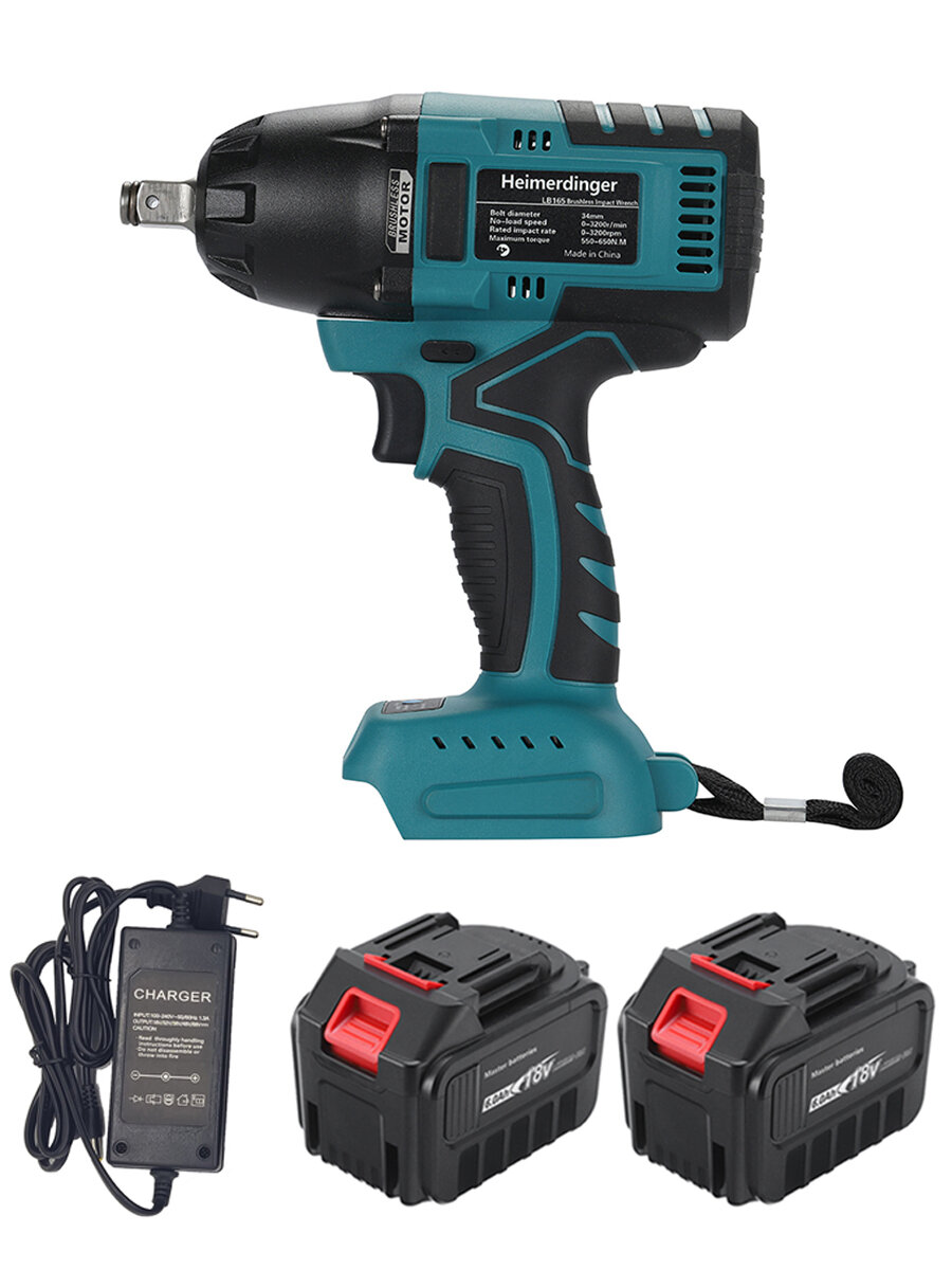Бесщеточный беспроводной электрический ударный гайковерт Heimerdinger 650 Нм 1/2-дюймовый электроинструмент с двумя батареями 6,0 Ач информация: