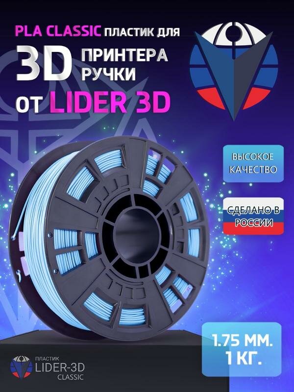 PLA пластик LIDER-3D Classic для 3D принтера 1.75 мм, Голубой, 1 кг информация:
