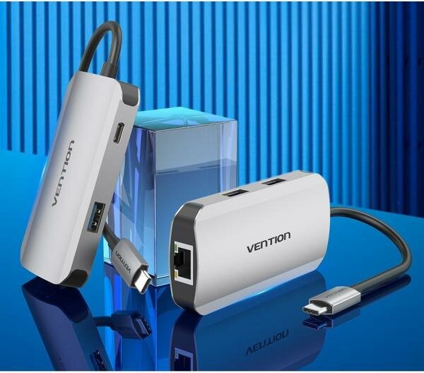 Отзывы на Концентратор USB Type-C Vention TOKHB 3 х USB 3.0 RJ-45 HDMI USB Type-C microSD SD серебристый