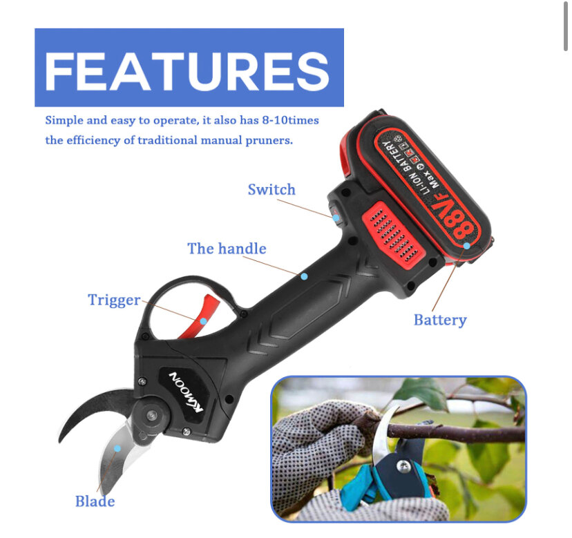 | Комплектация | Цепная аккумуляторная пила 1 шт, Аккумуляторный секатор-сучкорез 1 шт, Аккумулятор 2шт, зарядное устройство 1шт, Отвёртка 1шт, Набор ключей 1шт, Руководство пользования 1шт |