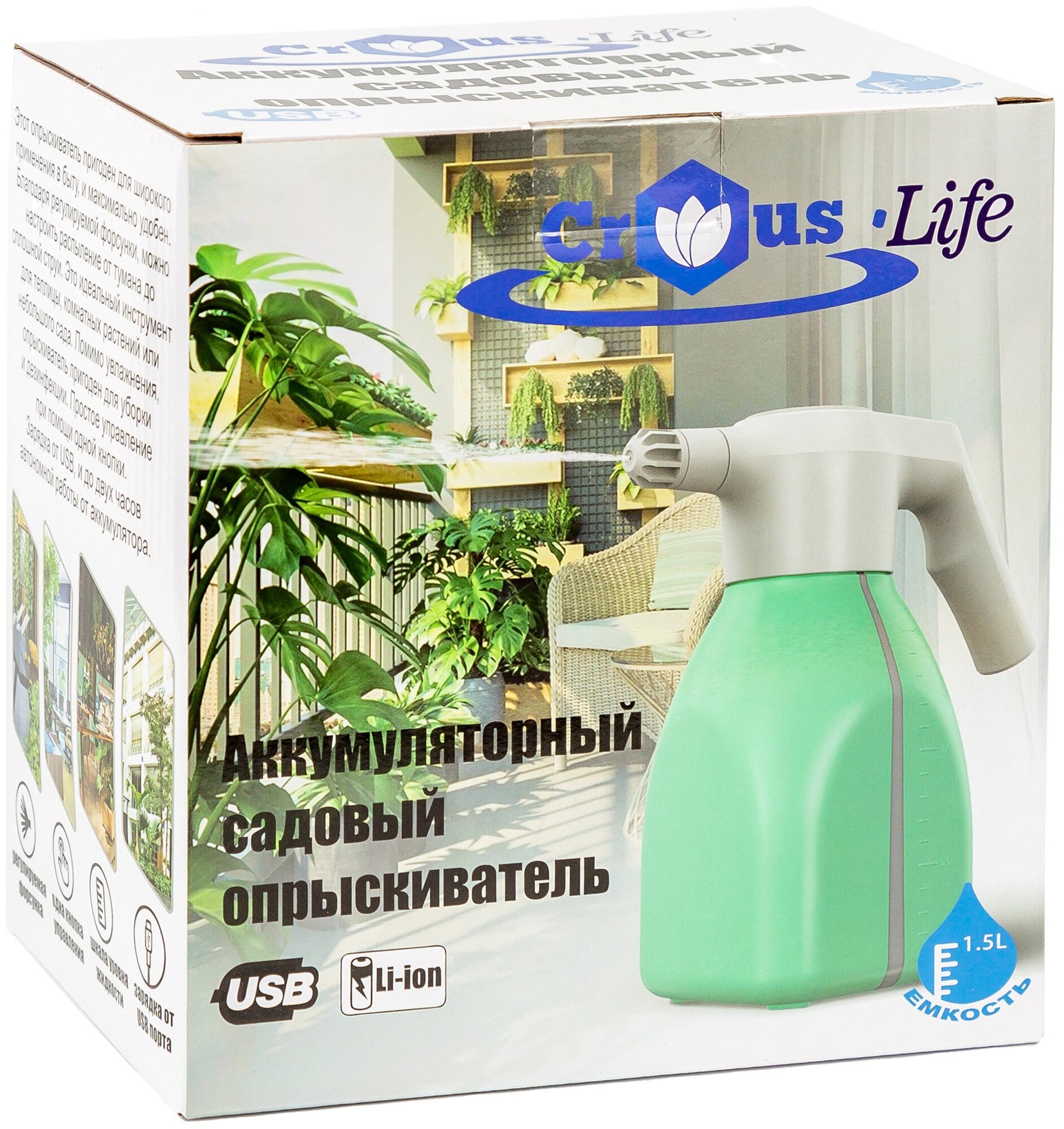 10 цен на Опрыскиватель аккумуляторный садовый Crocus-Life, GS-1, зарядка от USB, зелёный
