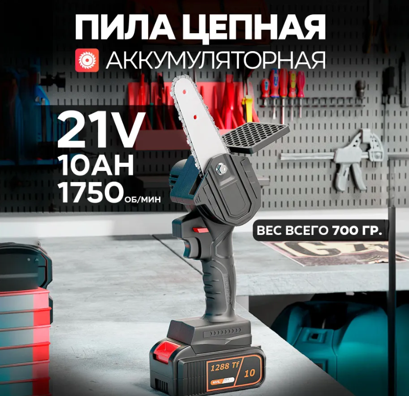 Пила аккумуляторная цепная 24Вт один аккумулятор Li-ion 2000 mAH