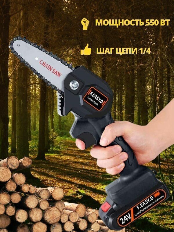 Пила аккумуляторная цепная 24Вт один аккумулятор Li-ion 2000 mAH