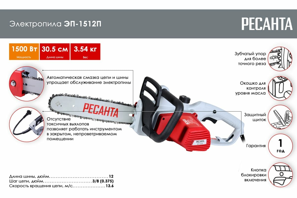 Электропила Ресанта ЭП-1512П 70/10/10 Ресанта информация: