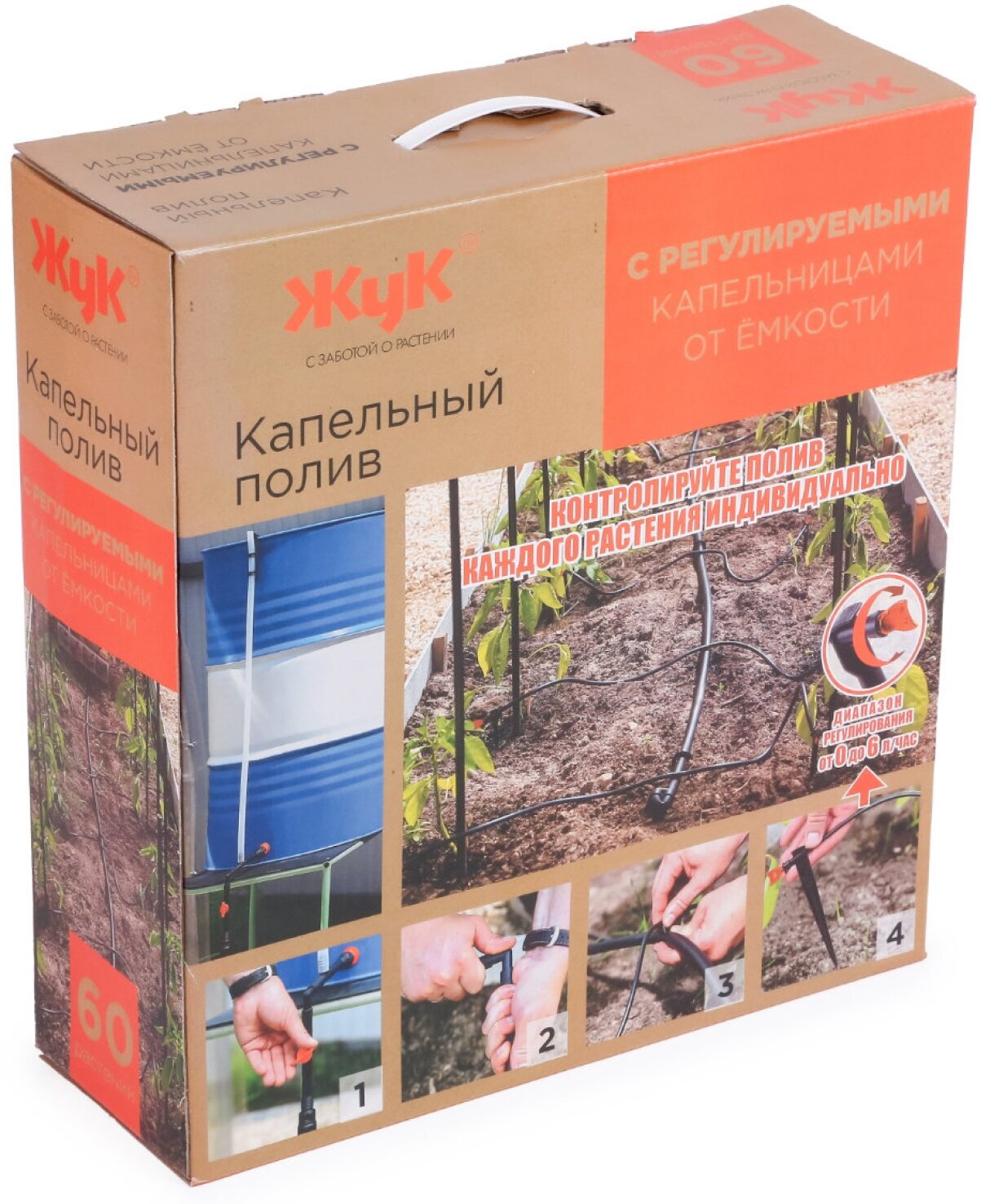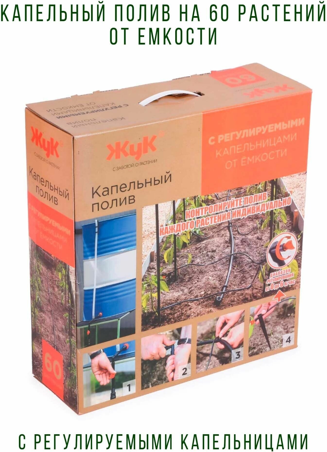 Капельный полив "Жук" от емкости, 60 растений, с регулируемыми капельницами (Тепличный) информация: