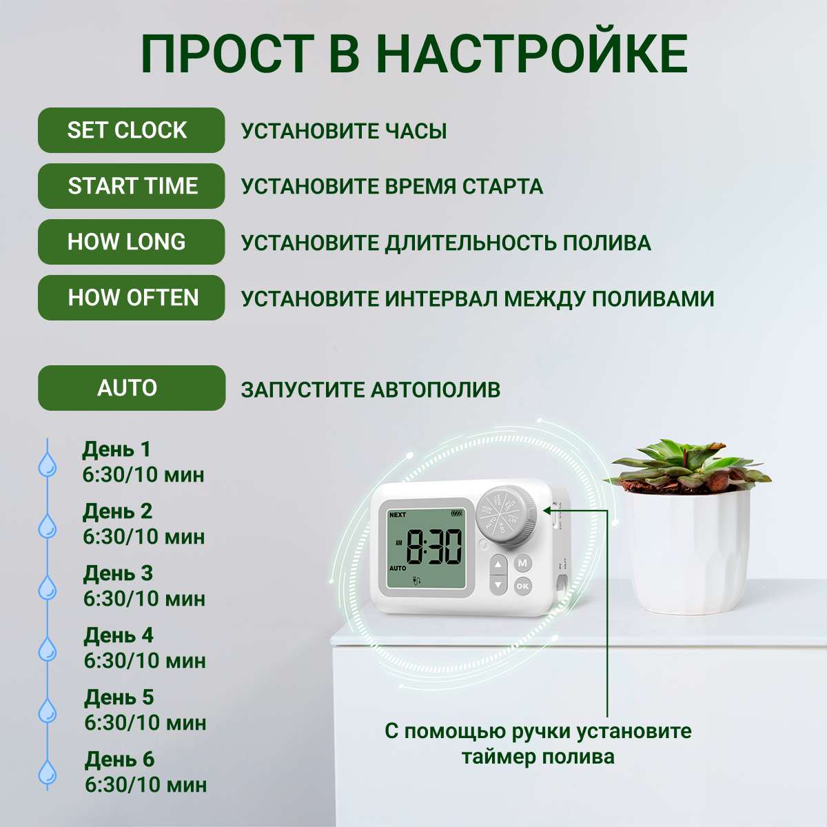 Автополив комнатных растений. Система капельного полива цветов. Автономная, автоматическая процессорная система. До 10 растений информация: