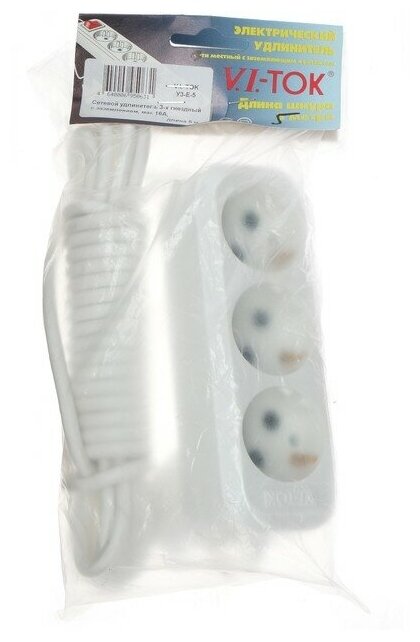 Отзывы на Сетевой удлинитель V.I.-Tok У3-Е 3-х роз. с заз. 16 А 5 м /35/
