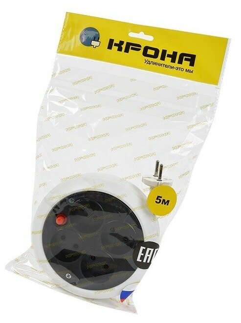 Отзывы на Удлинитель сетевой крона КБТ422005 РС-4 (У10-0001) 5м (рулетка с термо защитой) 4 роз. (ШВВП 2х0,75) BL1