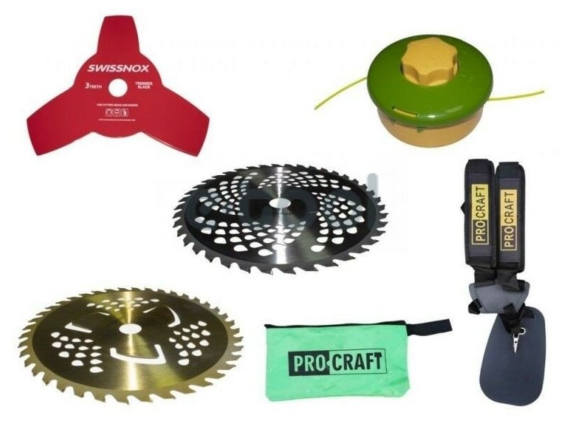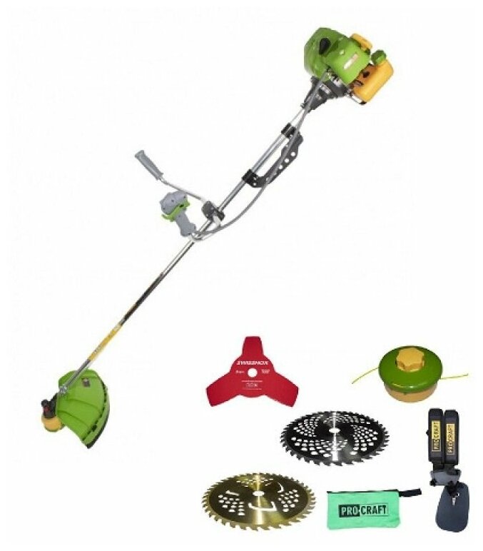 10 цен на Коса бензиновая PROCRAFT T4200pro FREE TOOLS (2х тактный двигатель), 52 СС, 4200Вт, 9000об/мин, 415мм Триммер, Газонокосилка