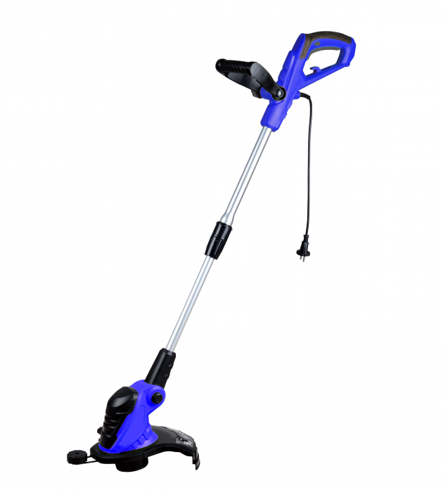 Особенности | Преимущества: Медная обмотка двигателя: Небольшой вес и габариты; Отсутствие вредных выбросов и неприятного запаха; Защитная шайба - для защиты деревьев и кустарников от повреждения леской. |