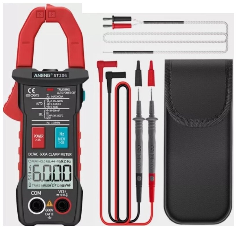 Отзывы на Токовые профессиональные цифровые клещи True RMS ANENG ST206 с NCV. 600 А. 14 функций.