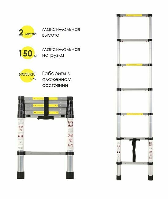 Лестница телескопическая WORKY 2 м 7 ступеней информация: