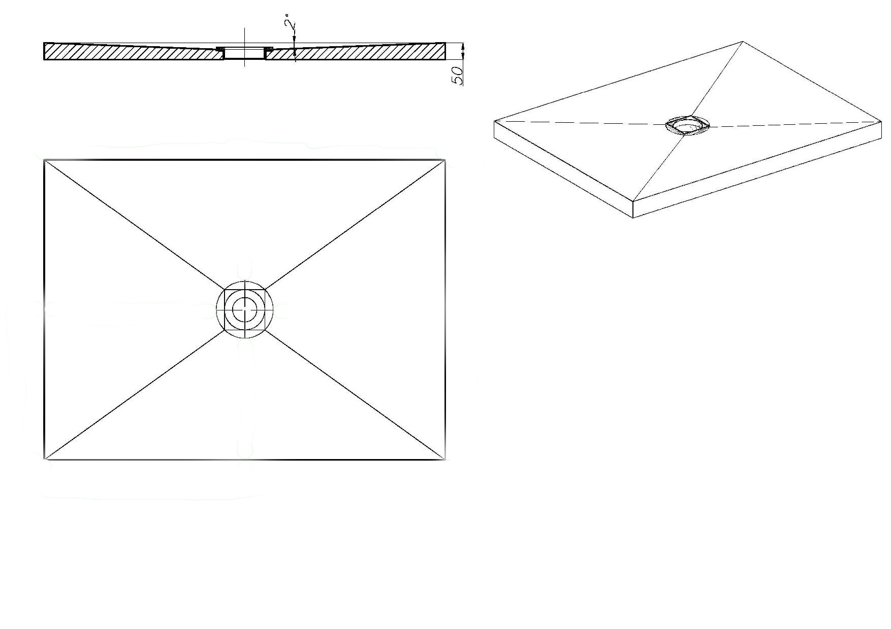 Поддон прямоугольный под плитку или мозаику для хамама, душевых, СПА, релакс зонах, у бассейнов - стандарт 1100х800х50 мм, уклон центр информация: