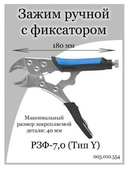 Ручной зажим для сварки с фиксатором ПТК РЗФ-7,0 (Тип Y) (005.010.554) информация: