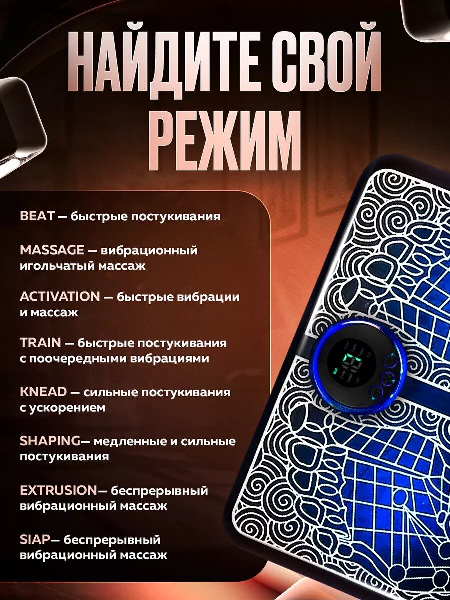 Массажер для ног электрический компрессионный, Массажный коврик вибрационный, Миостимулятор для ступней, мышц, токовый , 8 режимов информация: