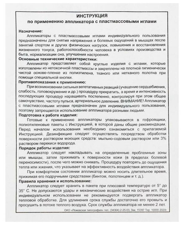 Отзывы на Аппликатор "Кузнецова", 144 колючки, спанбонд, 26 x 56 см, жёлтый.