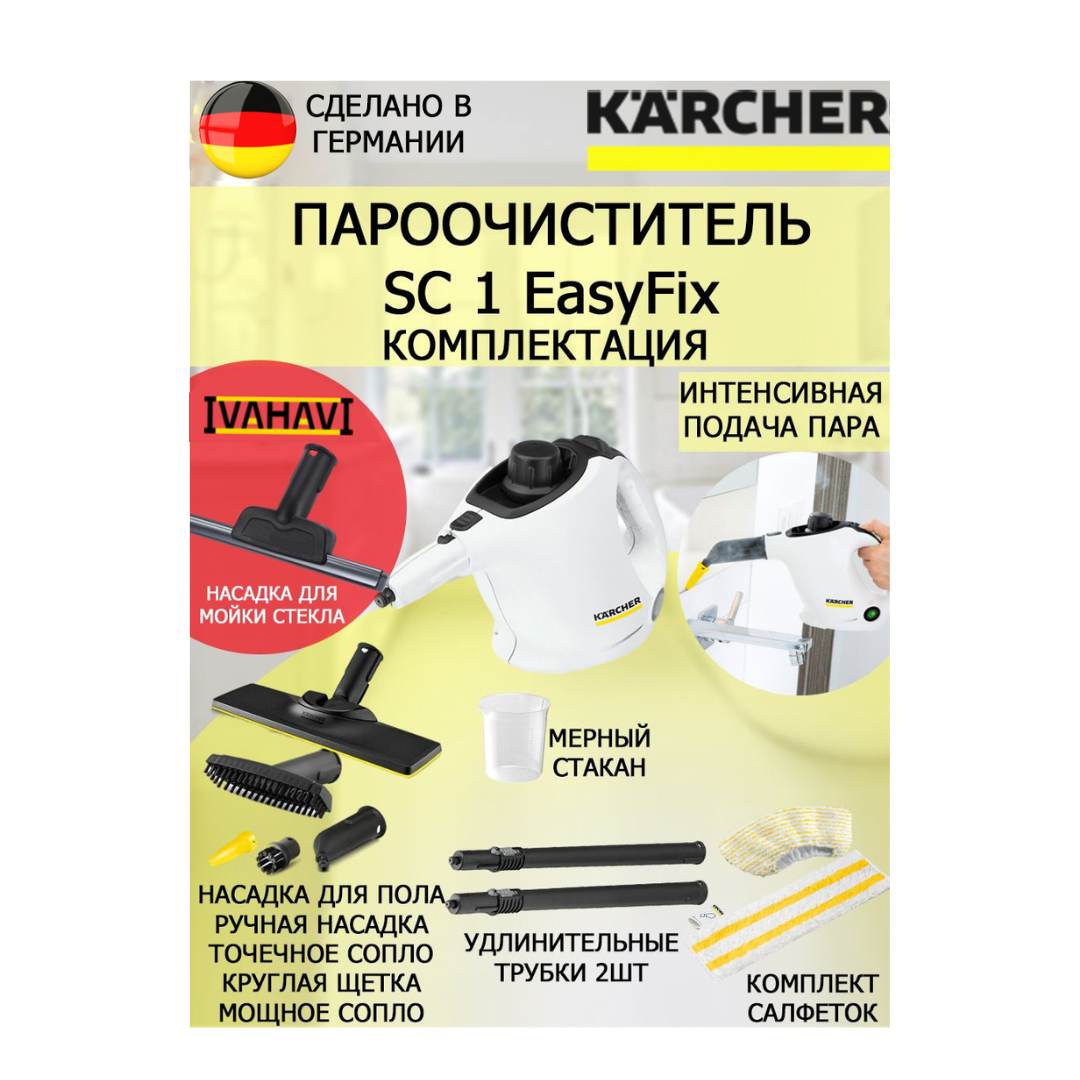 Отзывы на Пароочиститель Karcher SC 1 EasyFix Win +насадка для стекла и кафеля