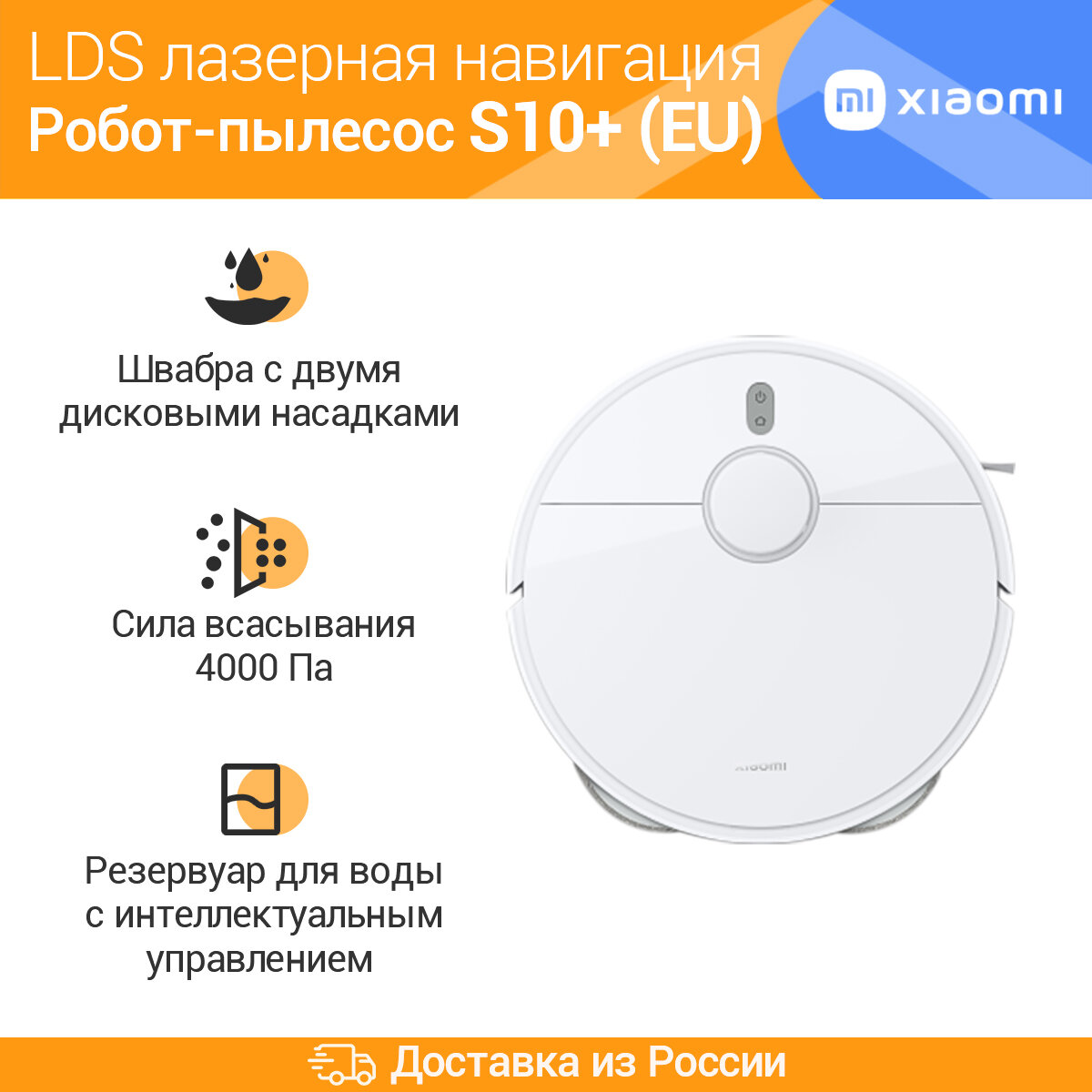 Робот-пылесос Xiaomi Robot Vacuum S10+ EU, 55Вт, белый/белый [bhr6368eu]