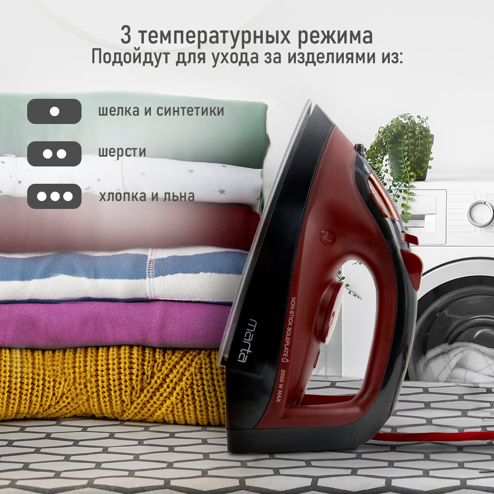 Утюг MARTA MT-1148 бордовый гранат информация: