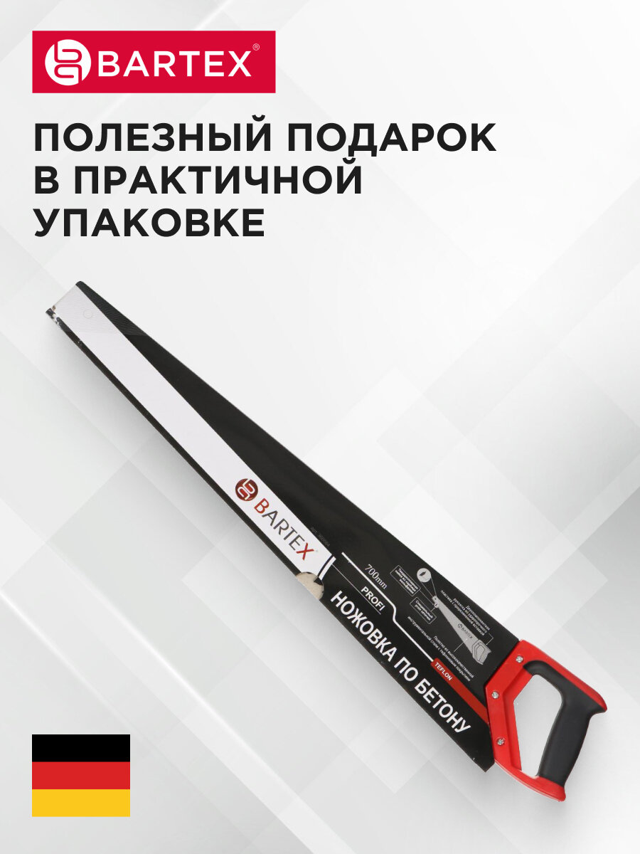 Ножовка по газобетону и пенобетону, 700 мм, тефлоновое покрытие, рукоятка двухкомпонентная, Bartex, напайки карбид информация:
