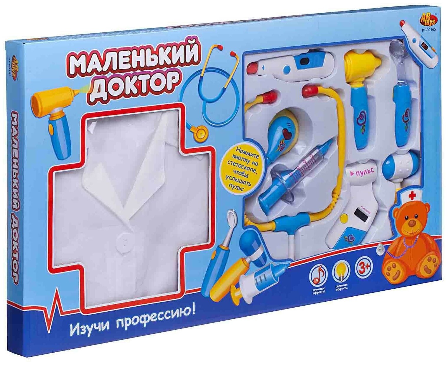 Игровой набор Маленький доктор. Набор доктора с халатом, 8 предметов, в коробке - ABtoys [PT-00165(9911B)]
