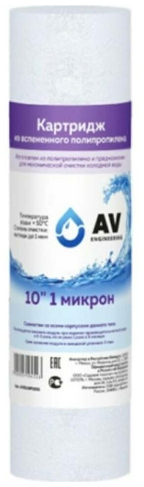 Картридж из вспененного полипропилена 10" 1 микрон AV ENGINEERING (AVE119P1001)