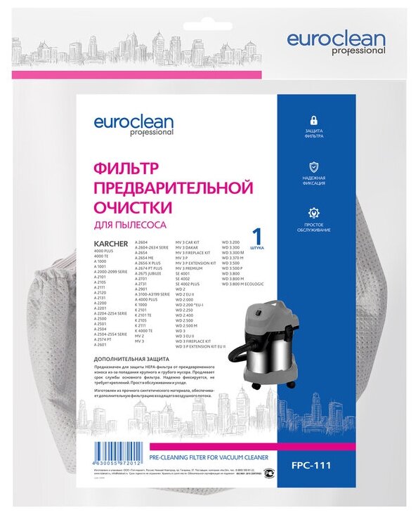 Фильтр предварительной очистки EURO Clean FPC-111 для пылесоса KARCHER WD 3 тип 6.414-552 информация: