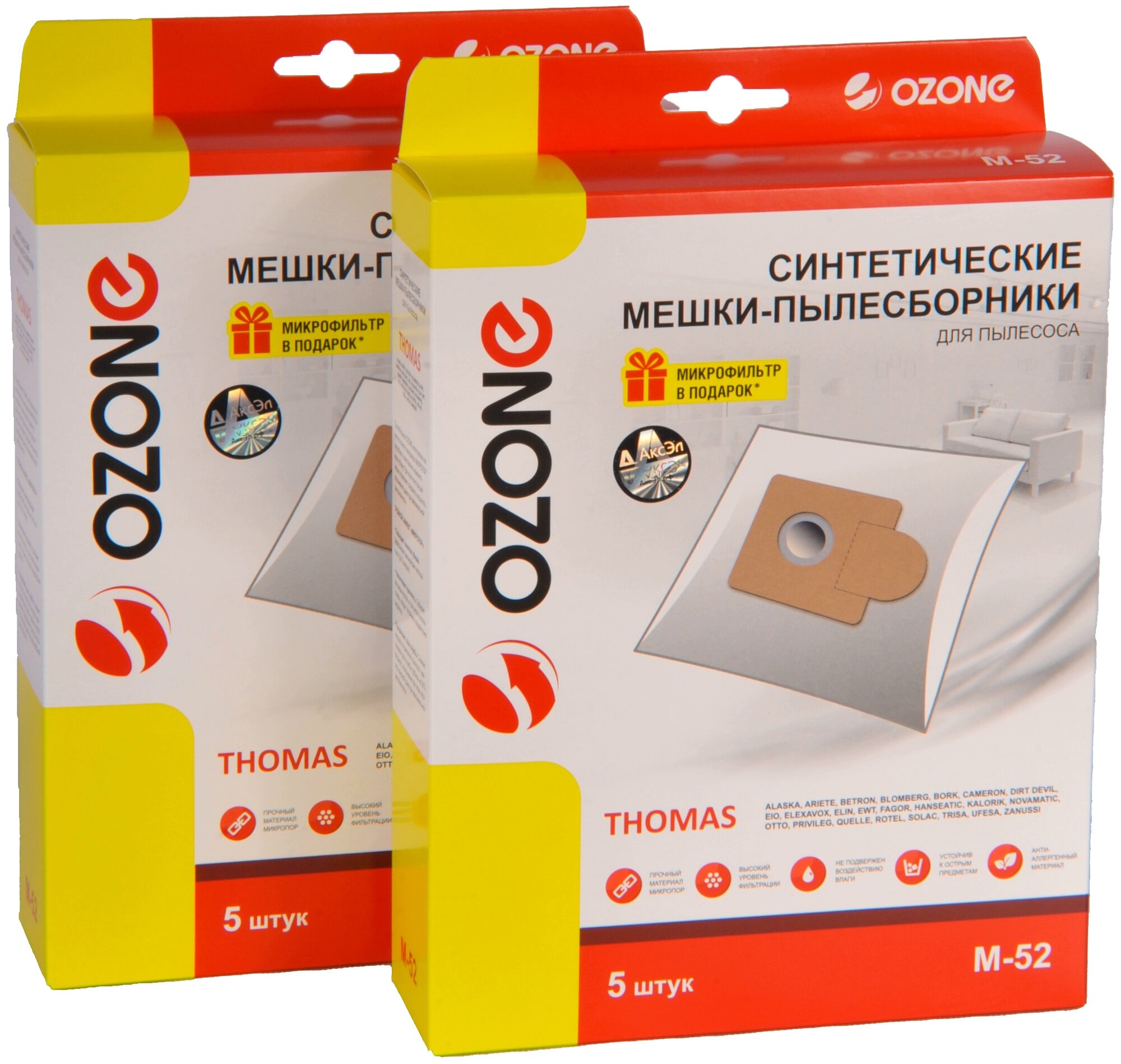 Отзывы на Мешки пылесборники Ozone M-52/2 для пылесоса THOMAS, BORK, UFESA, CAMERON, ZANUSSI, 2 упаковки по 5 шт.