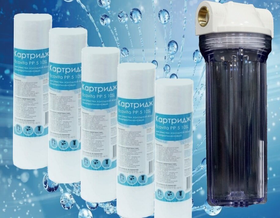 Отзывы на Прозрачный корпус магистрального фильтра Ecovita 1/2" 10SL для холодной воды + 5 картриджей PP 10 мкм 10SL