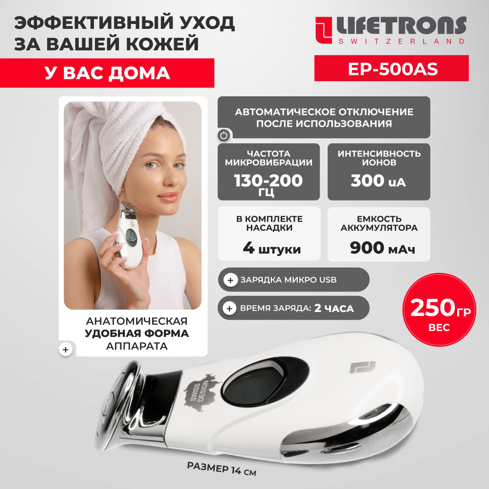 Lifetrons EP-500AS-WH1 Micro current lonic Slimming SPA 4 in 1 Косметологический Микротоковый Ионный СПА аппарат для лица и тела 4 в 1 информация: