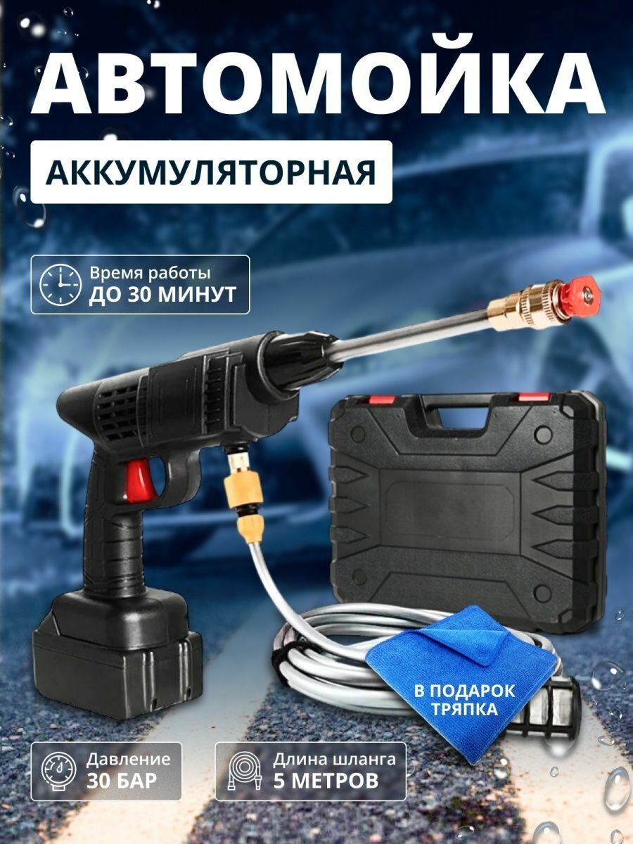 Автомойка аккумуляторная высокого давления с кейсом 2 аккумулятора. Минимойка