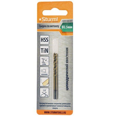 Сверло по металлу 2,5х57 мм 2 шт блистер титановое покрытие информация: