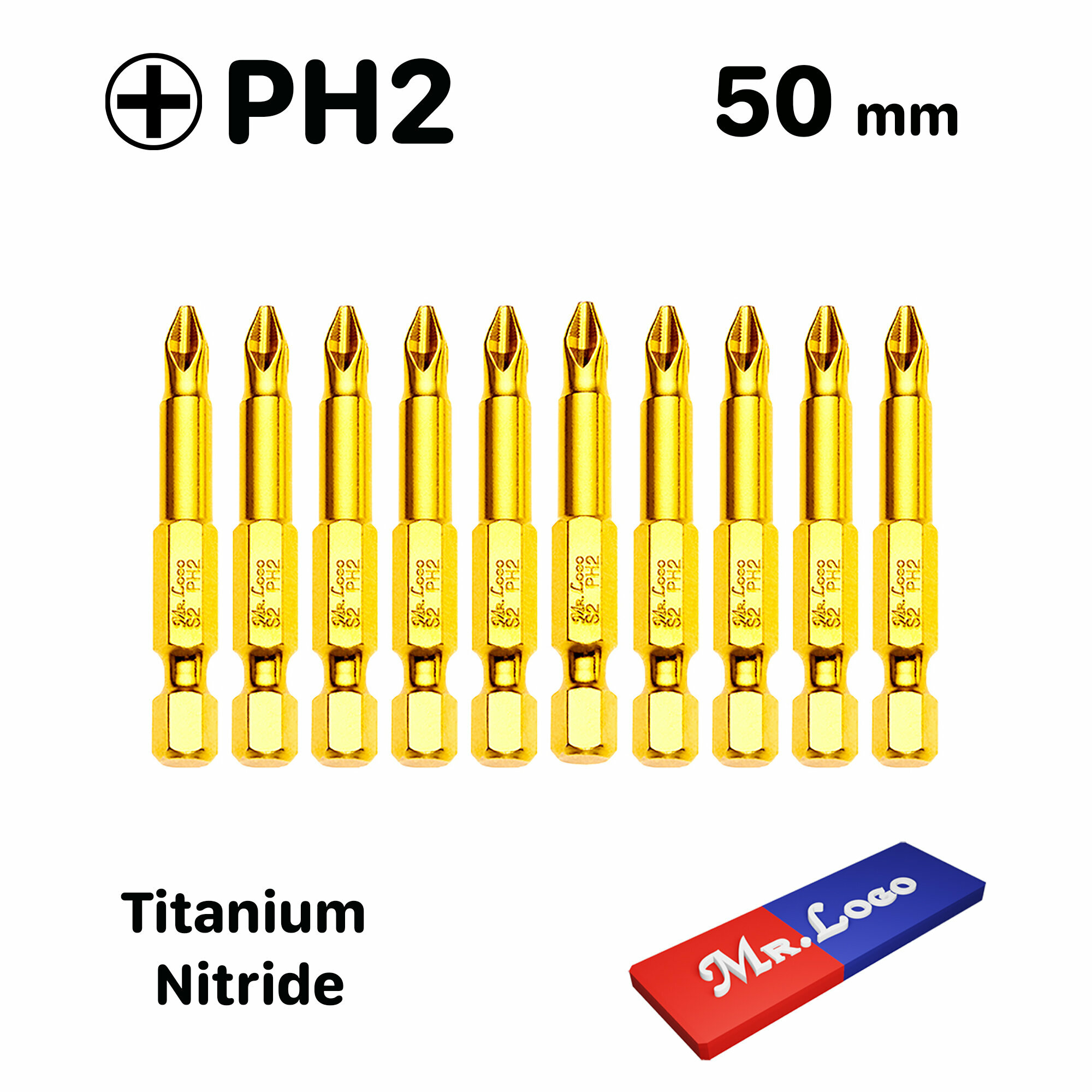 10 цен на Бита Нитрид Титана PH2 x 50 мм Mr.Logo, Сталь - S2, 10 шт