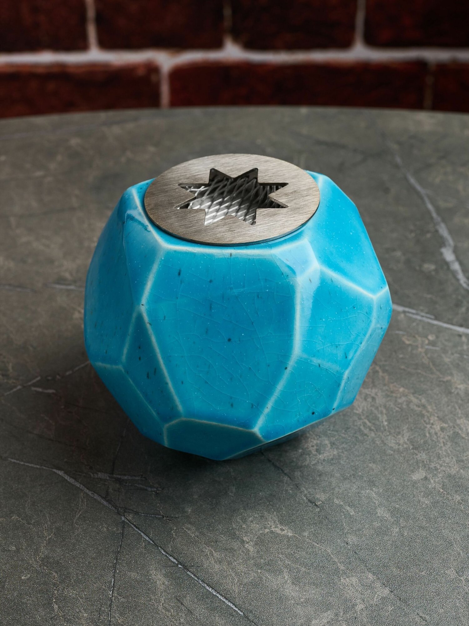 Биокамин настольный, биосвеча OGNIVDOM с гранями голубая в крапинку информация: