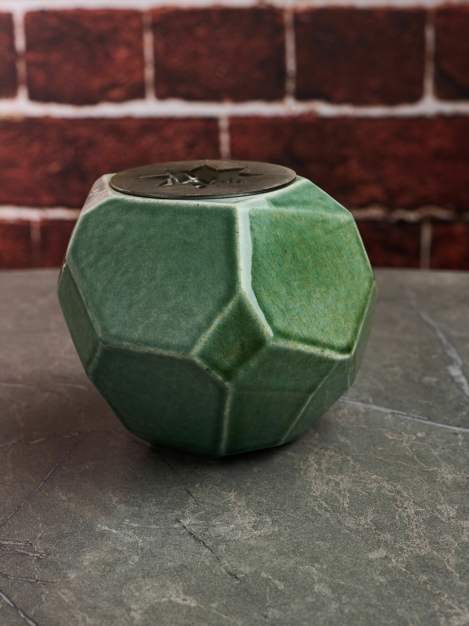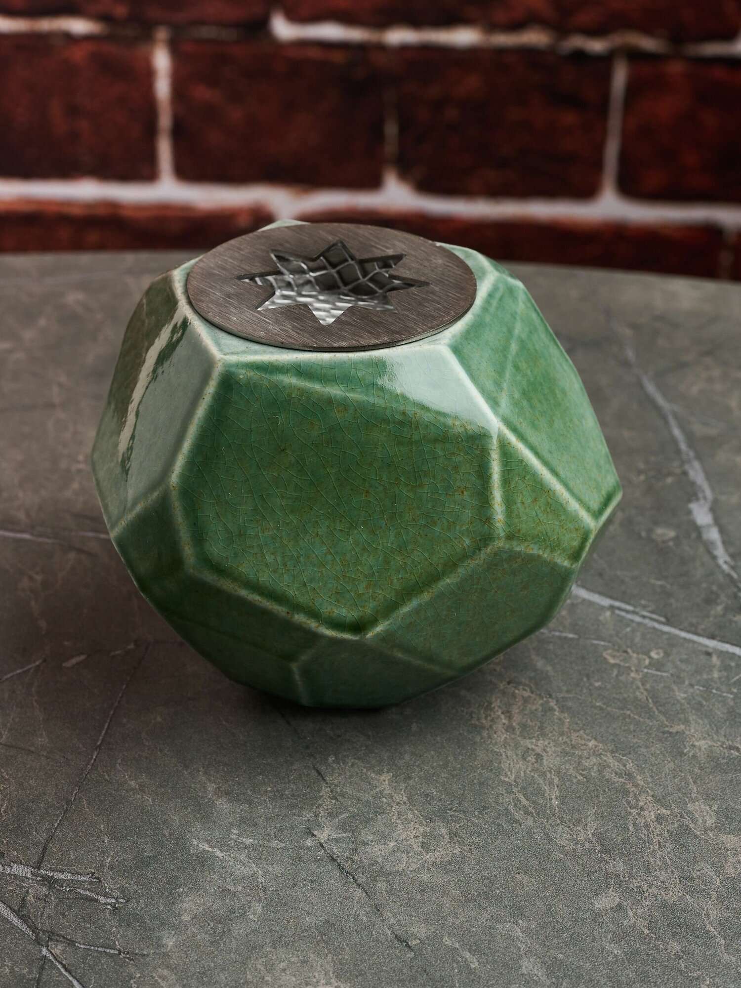 Биокамин настольный, биосвеча OGNIVDOM с гранями темно-зеленая в крапинку информация: