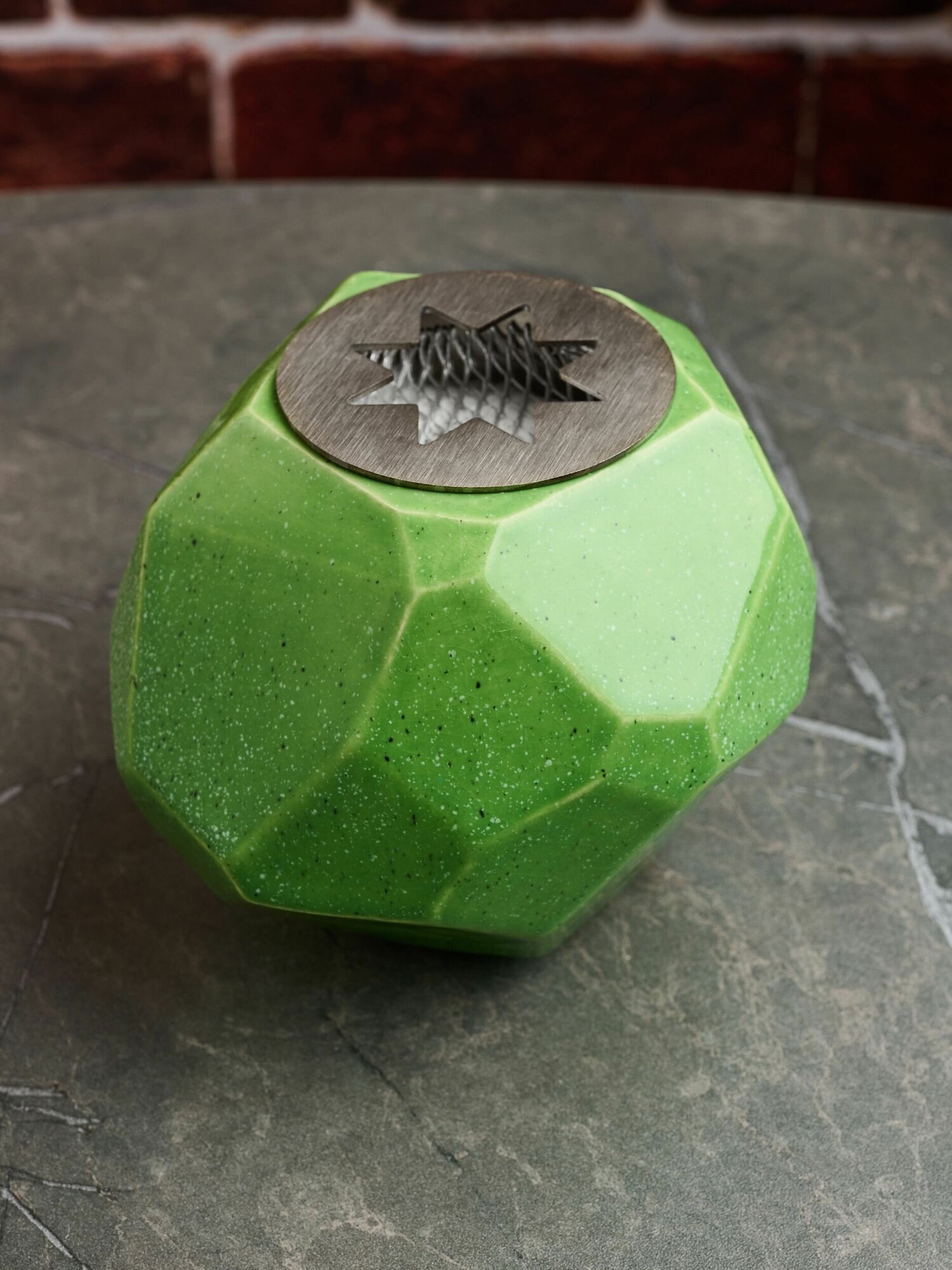 Биокамин настольный, биосвеча OGNIVDOM с гранями светло-зеленая информация: