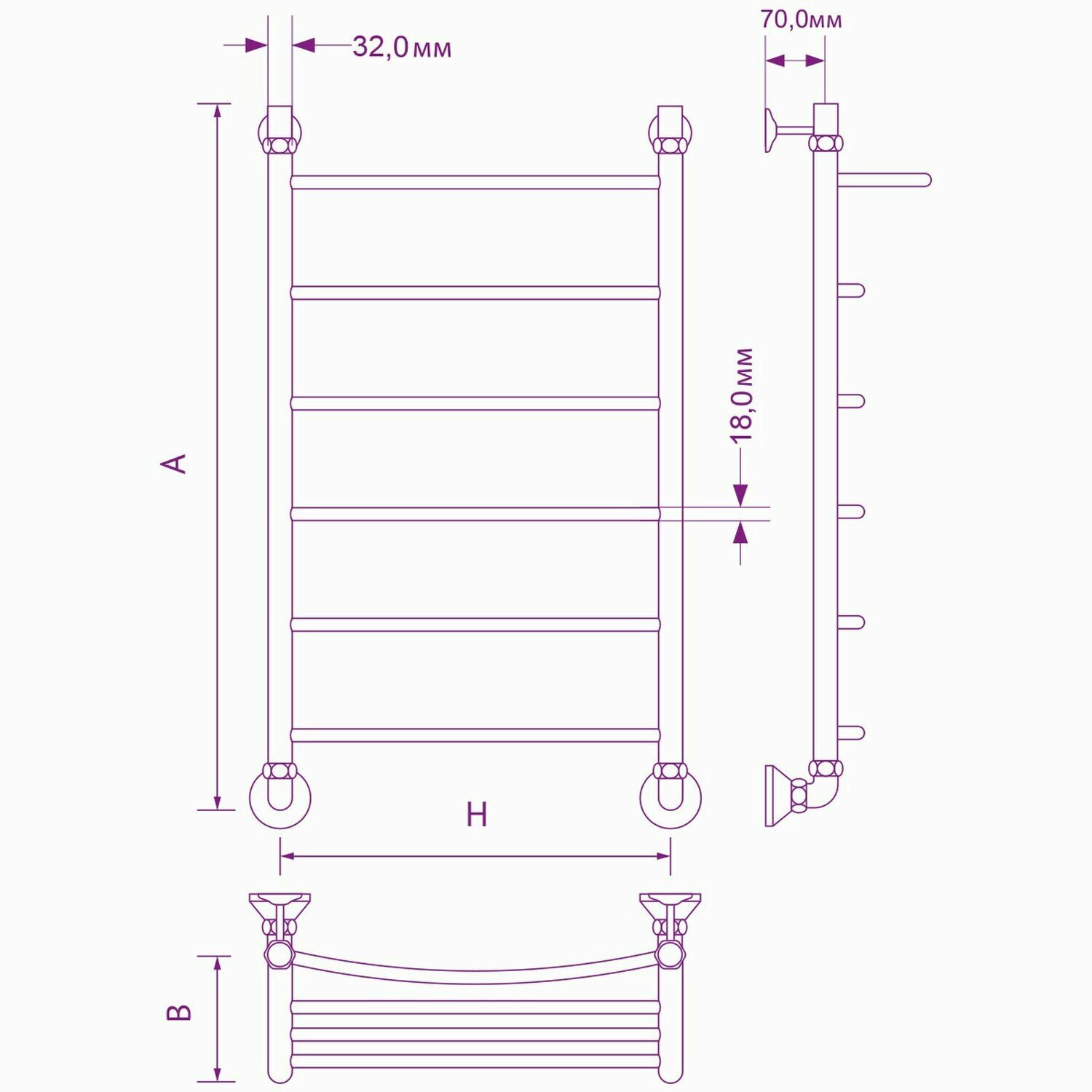 Полотенцесушитель ZOX ЛЦ 80х50х50 1'' полка 6 перекл дуга левое бок подкл (крепеж без монт комп) В4 информация: