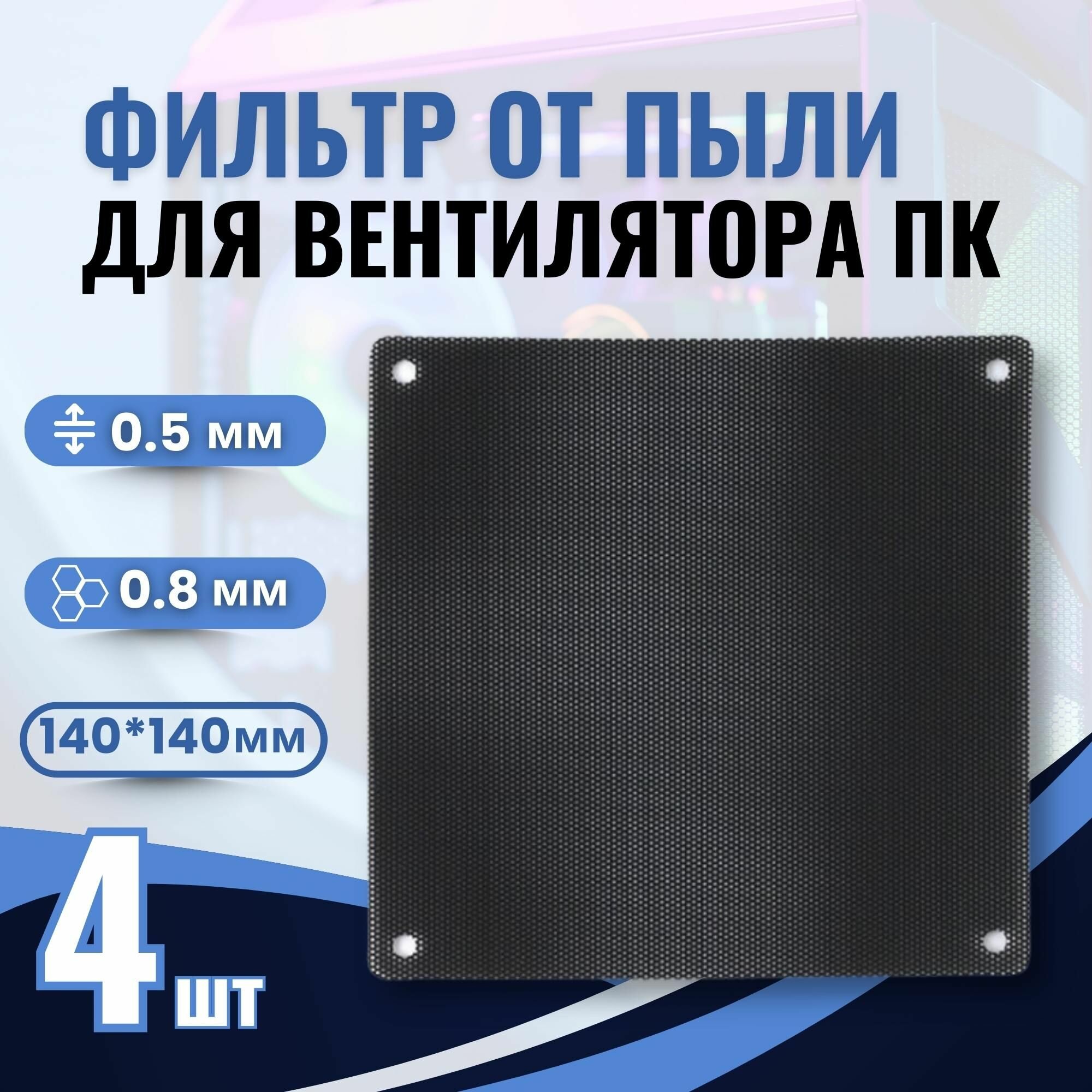 Фильтр от пыли для вентилятора ПК 140 мм х 140 мм толщина 0,5 мм размер ячейки (соты) 0.8 мм 4 шт. (Черный) информация:
