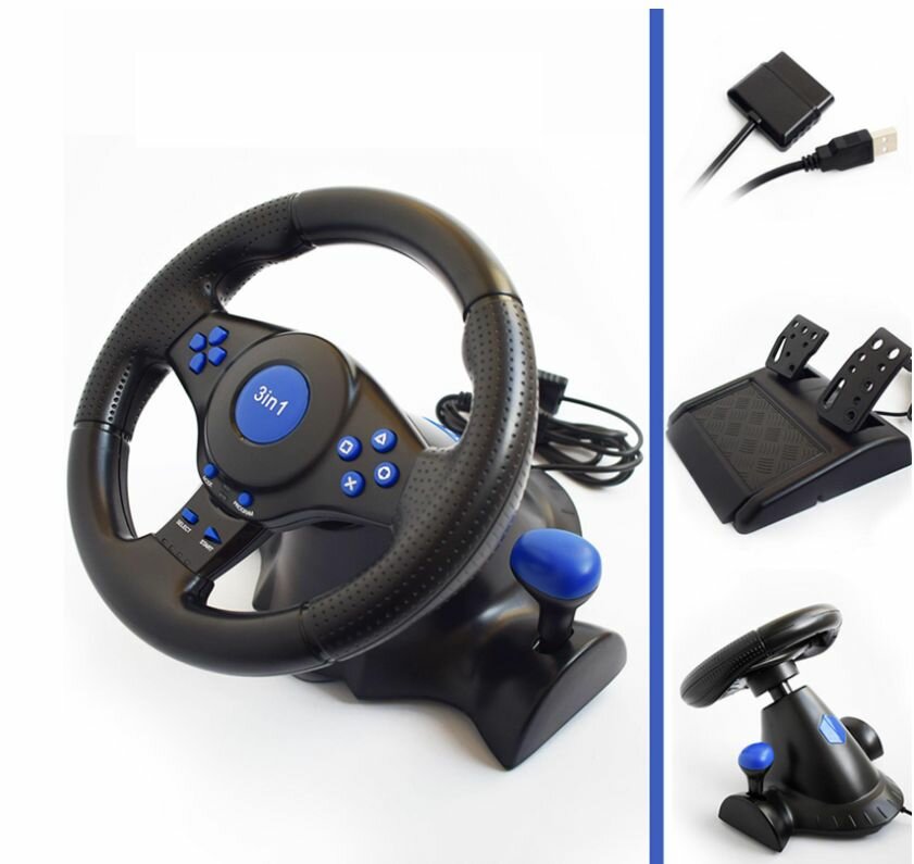 10 цен на Игровой руль с педалями для ПК, PS3/PS2/PS USB
