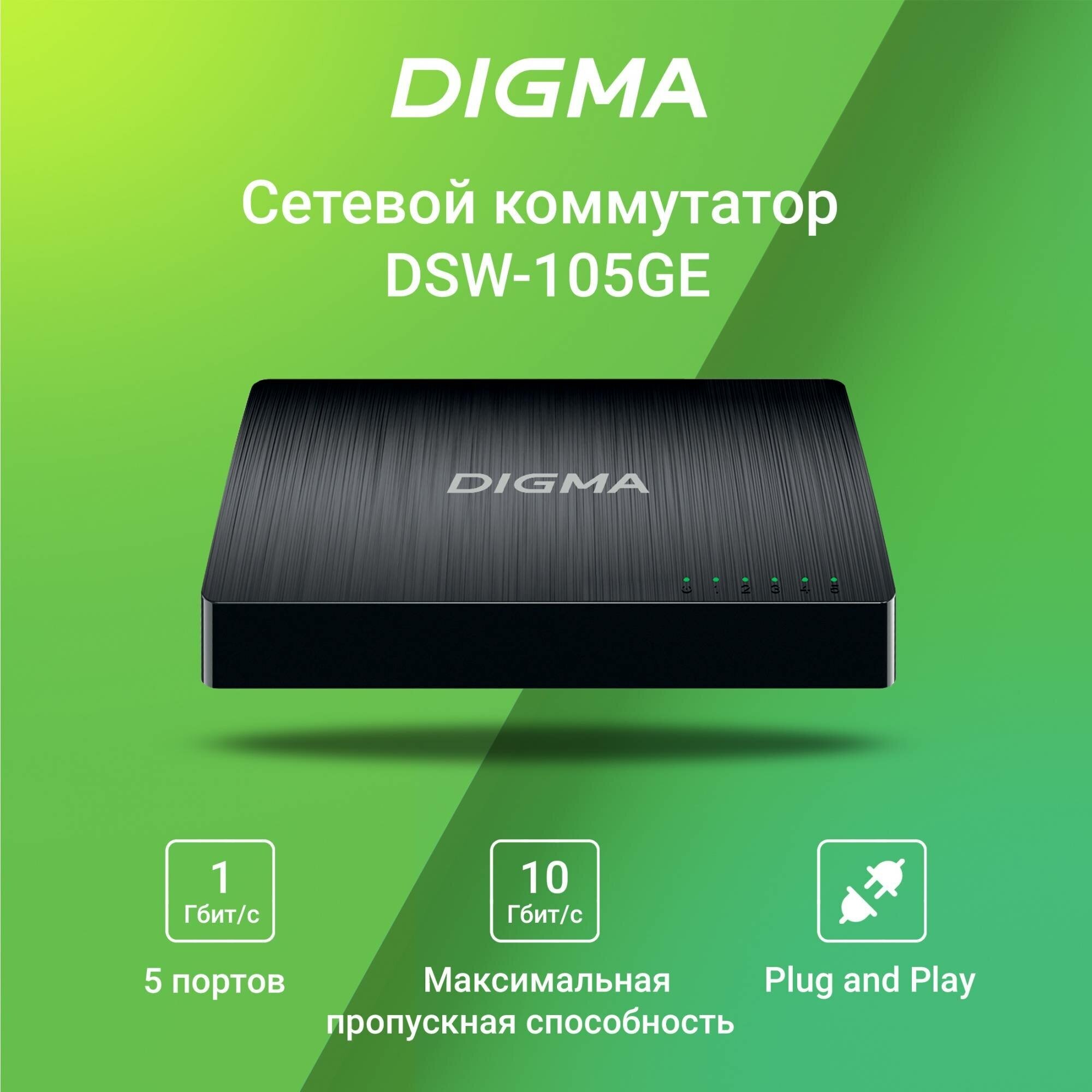 Коммутатор неуправляемый Digma DSW-105GE информация: