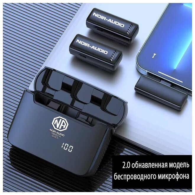10 цен на Микрофон петличный беспроводной двойной NOIR-audio Smart M с разъёмом Type-C и с зарядным кейсом