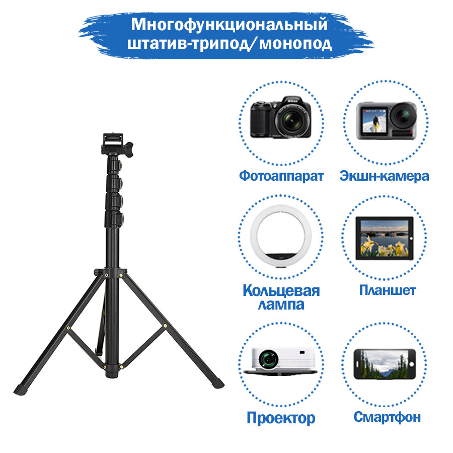 10 цен на Штатив для телефона, фотоаппарата, камеры, кольцевой лампы, проектора напольный Jmary MT-39 - Черный