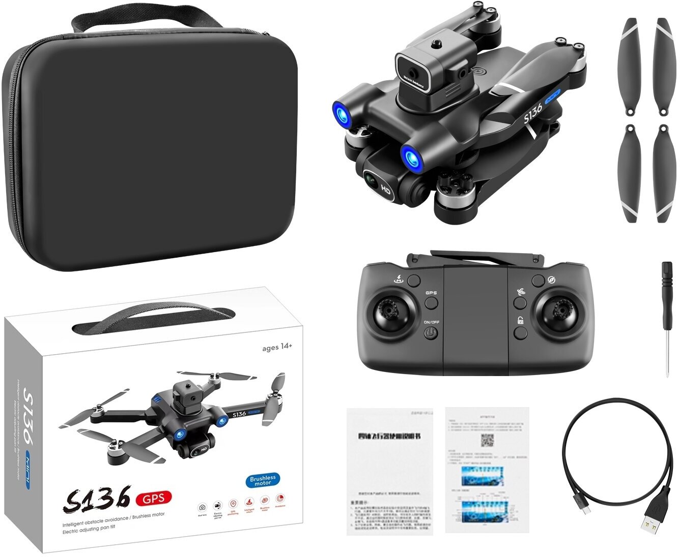 Квадрокоптер S136 Pro Plus Mini, GPS, с датчиком препятствия, 3км, 2-камеры 4К/HD, 2 аккумулятораа информация: