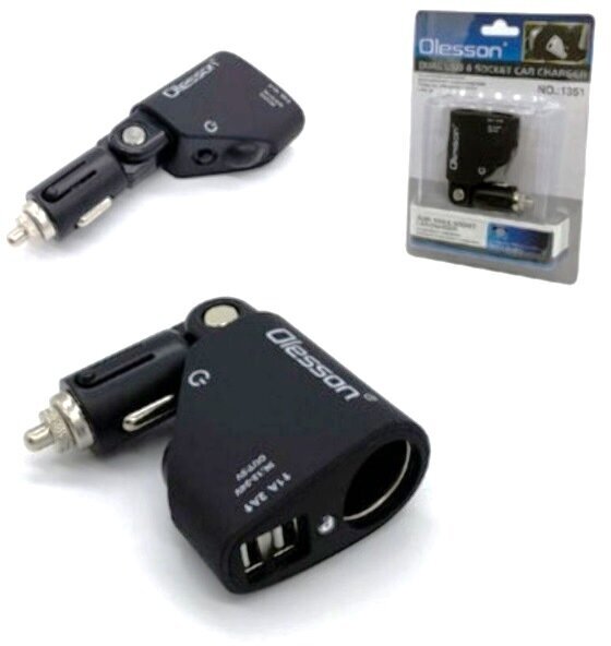 10 цен на Разветвитель 2 USB 3.1 A, 1 гнездо прикуривателя, черный OLESSON 1351